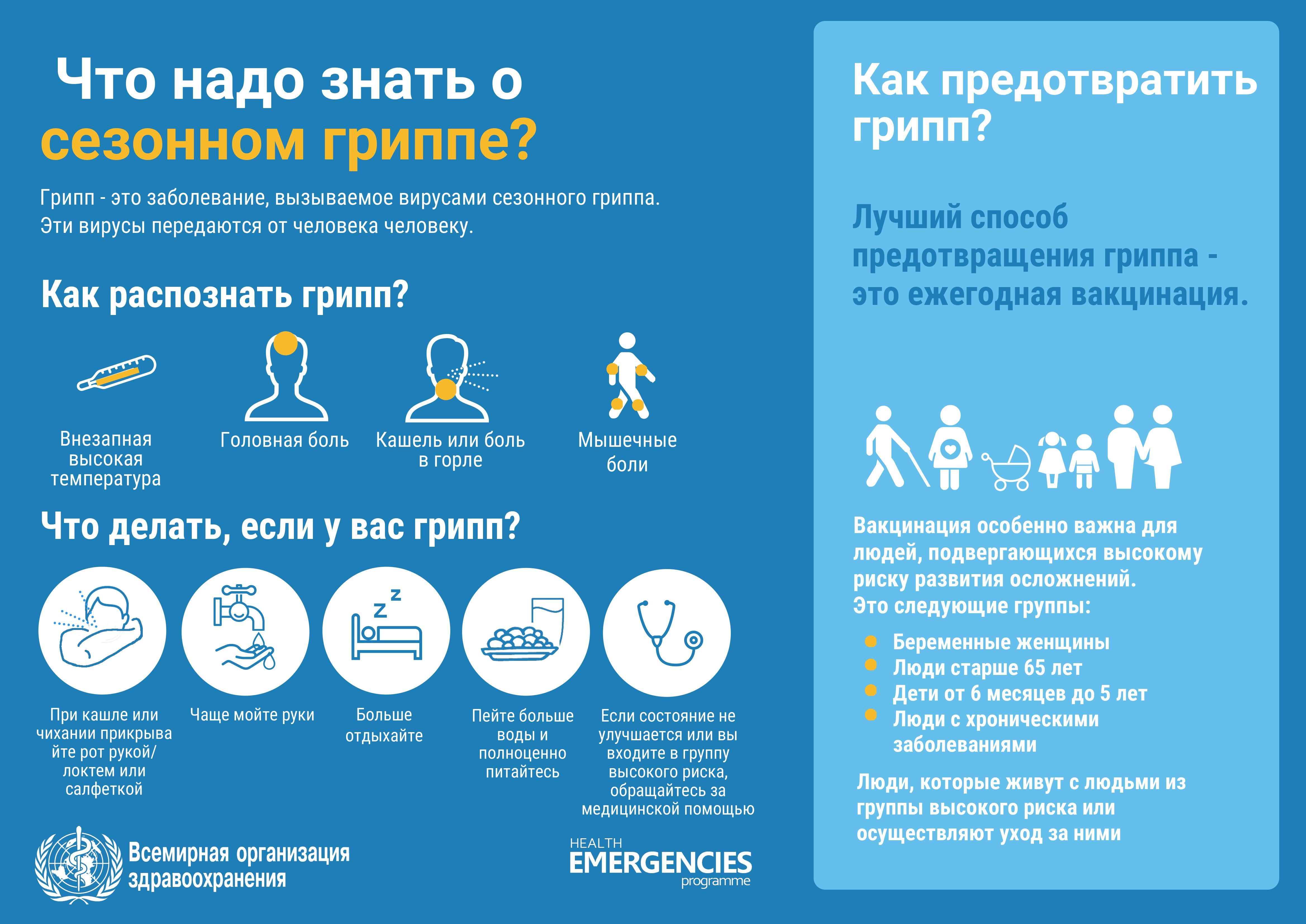 Грипп опасен для каждого. Однако, наибольшую угрозу грипп и его осложнения представляют для маленьких детей, пожилых лиц, а также для людей, страдающих хроническими болезнями. Это, в первую очередь, дети с поражениями центральной нервной системы, пациенты с патологией сердца (врожденные пороки сердца, инфаркт в анамнезе, ИБС и т.д.), с заболеваниями легких, почек, эндокринной системы, с иммунодефицитами и т.д.