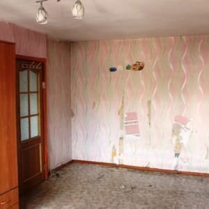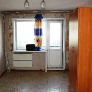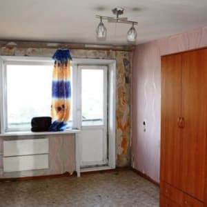 Окна и трубы пластиковые, счётчики. Обои, потолки шпаклеванные, линолеум. Балкон не остеклен. Требуется косметический ремонт. Входная дверь металлическая.