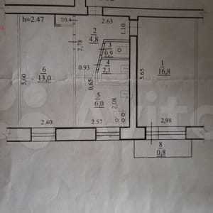 - Площадь кухни: 6 м²