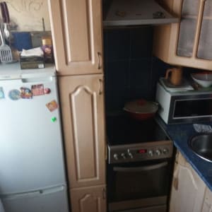 Комнаты и сан.узел раздельные, пластиковые окна, балкон(решетка),кафель,ламинат, кафель. Кух.гарнитур, шкаф-купе входит в стоимость квартиры. Рядом остановка.