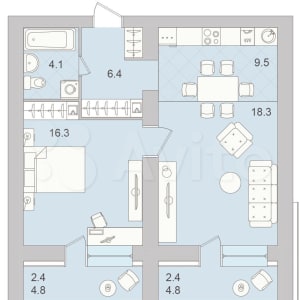- Общая площадь: 64.2 м²