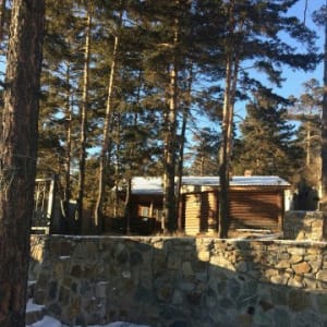 Во двoрe баня 85 кв.м из оцилиндpованнoгo бpeвна с террасой и 2-мя жилыми комнатами.
